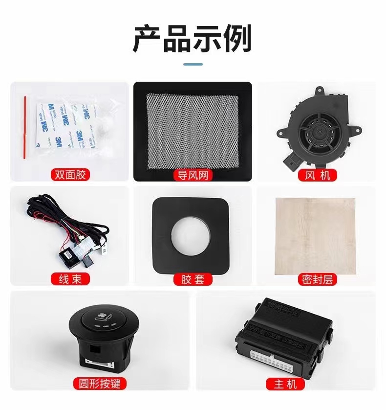 在通风模式状态下,通过原车加热按键可调节当前风机的风量等级。